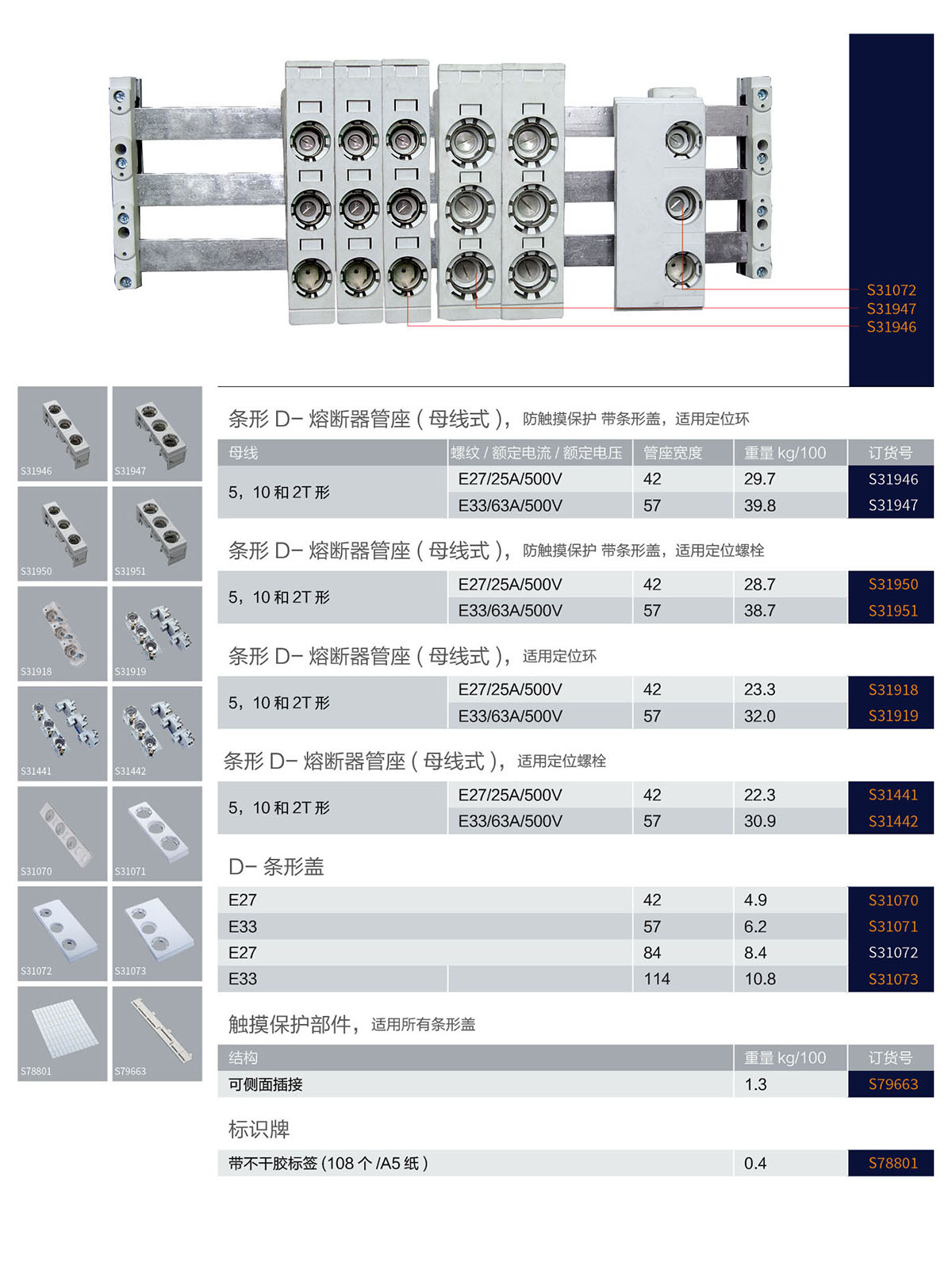 60mm条形D熔断器管座(母线式)