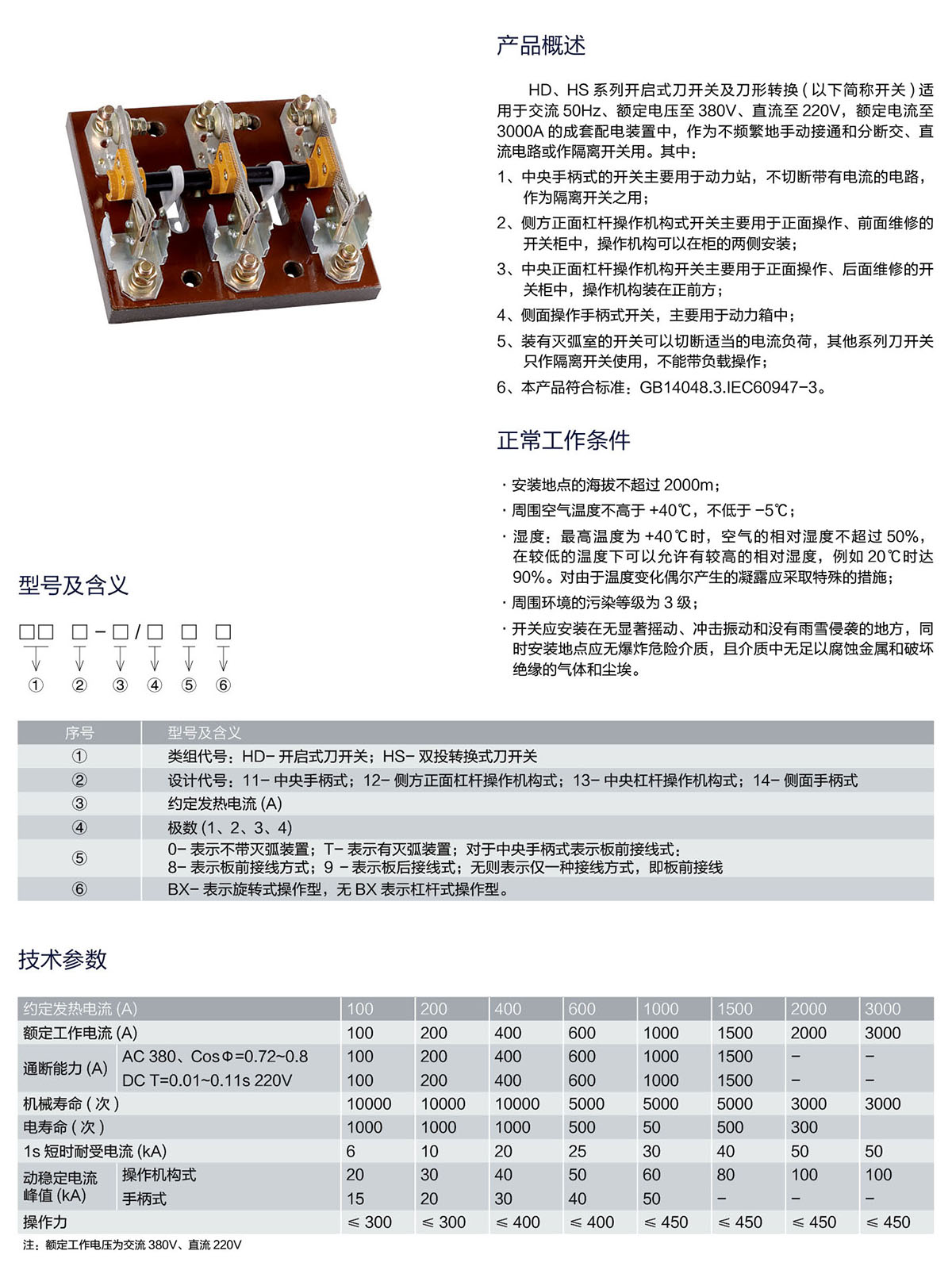 HD、HS系列开启式刀开关及刀形转换开关