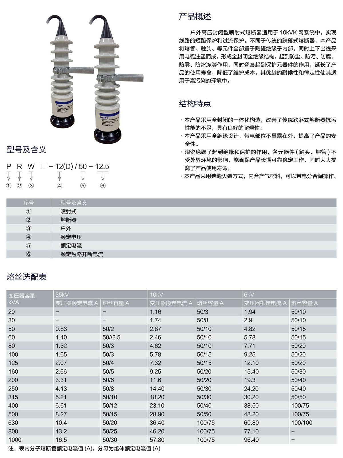 PRW口-12(D)50-12.5户外封闭型喷射式高压熔断器
