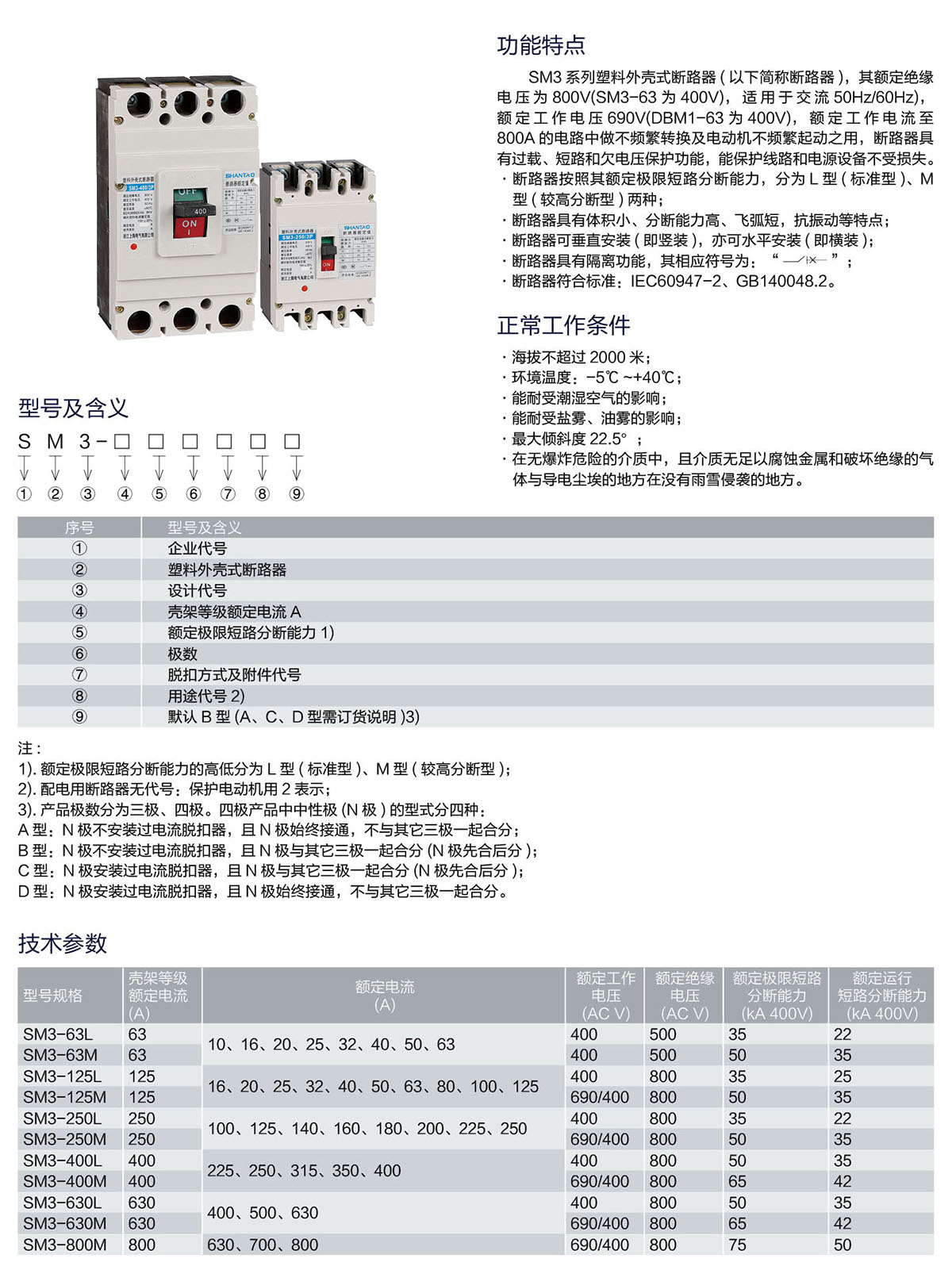 SM3系列塑料外壳式断路器