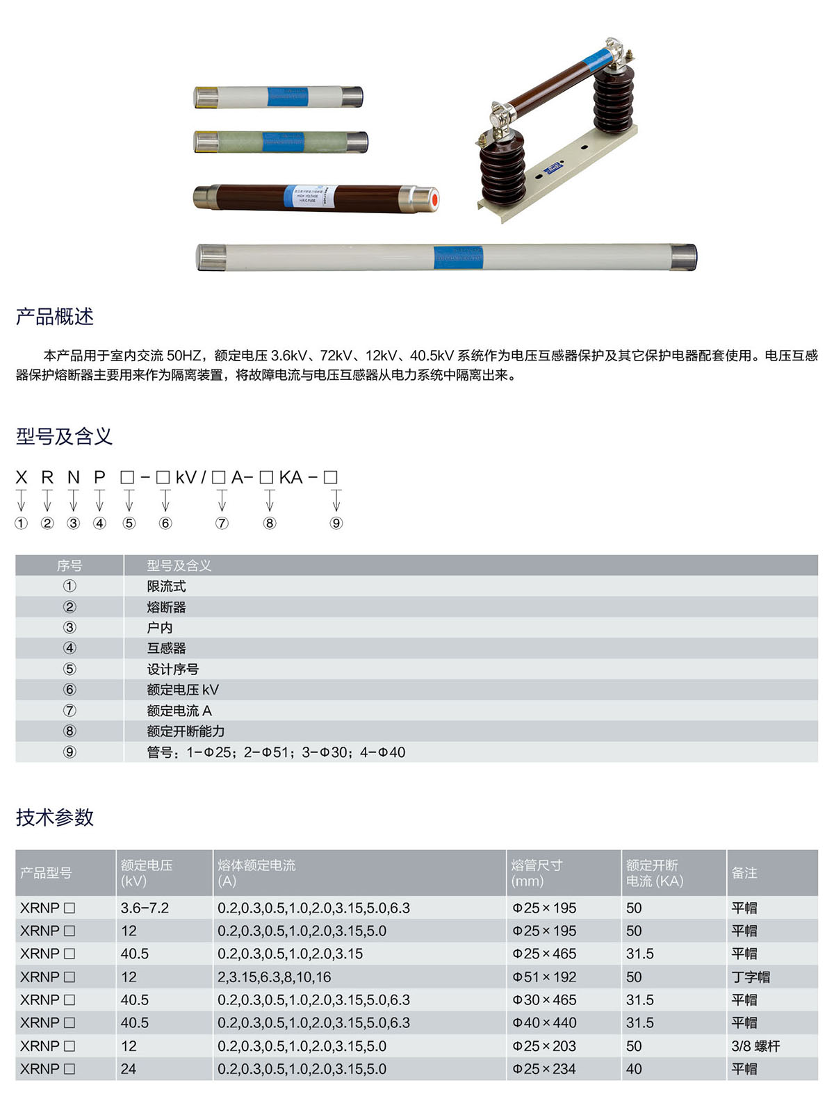 电压互感器保护用高压限流熔断器